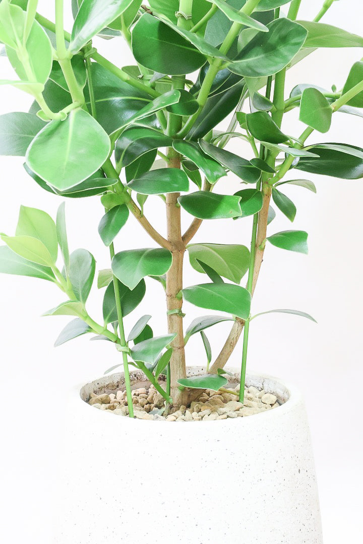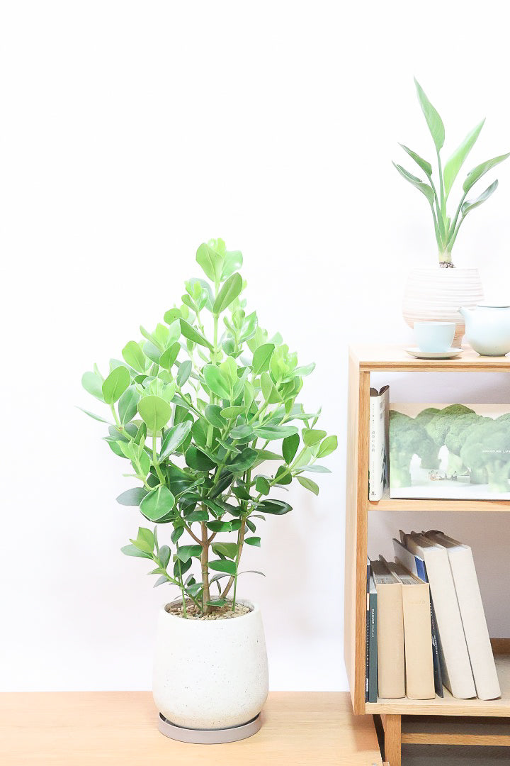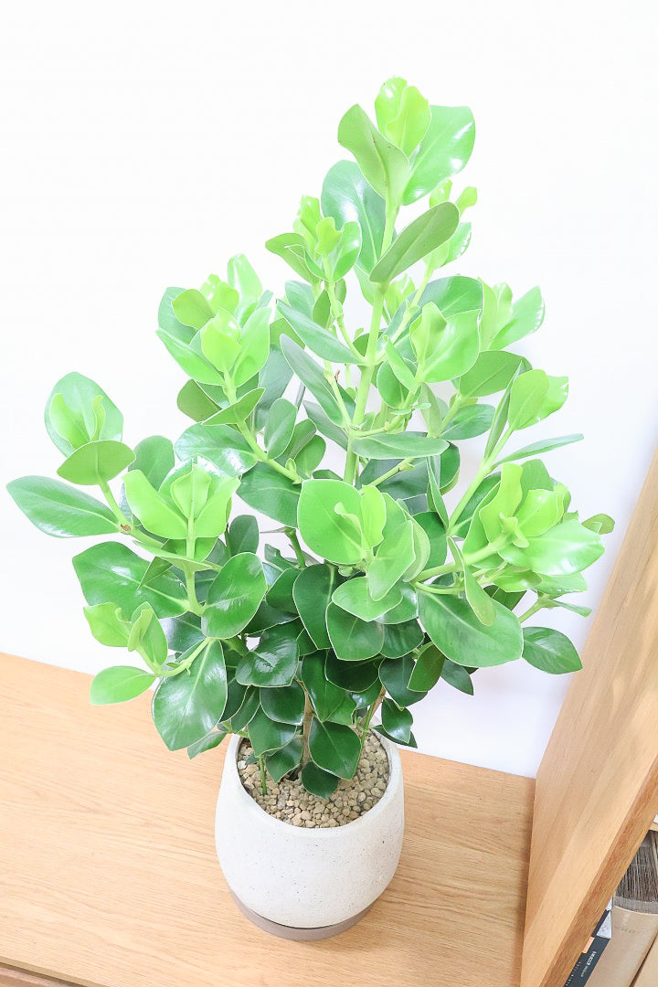 葉っぱの形がプニプニしていてかわいいクルシア!!葉っぱ一枚一枚の形がかわいくて人気のある植物です。葉の質感はとても柔らかく、ずっと触っていたくなるような優しい質感です。長い時間をかけて生長する植物ですので、お部屋のインテリアとしてぴったりの植物です。