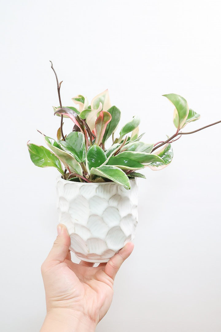 今回入荷のリップカラーは爽やかな葉が特徴です。その中でも色彩強めの個体を見つけてきました!葉の質感はとても固くしっかりとしています。生長して垂れ下がる様はとても素敵ですので、是非とも育てていただきたい観葉植物です!