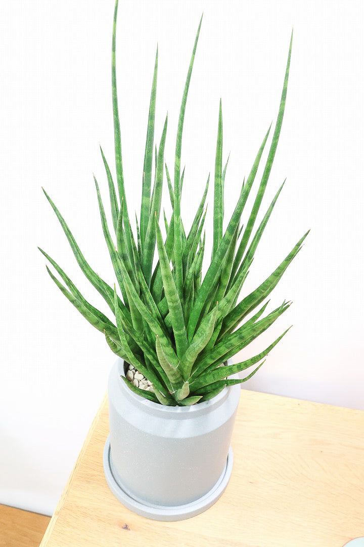 マイナスイオンを放出することで有名なサンスベリア♪葉の質感は多肉質でやや硬くとても丈夫です。新芽も出てくるので成長も楽しめます。生長すると小株がタケノコのようにニョキニョキ出てきて生長していきます。