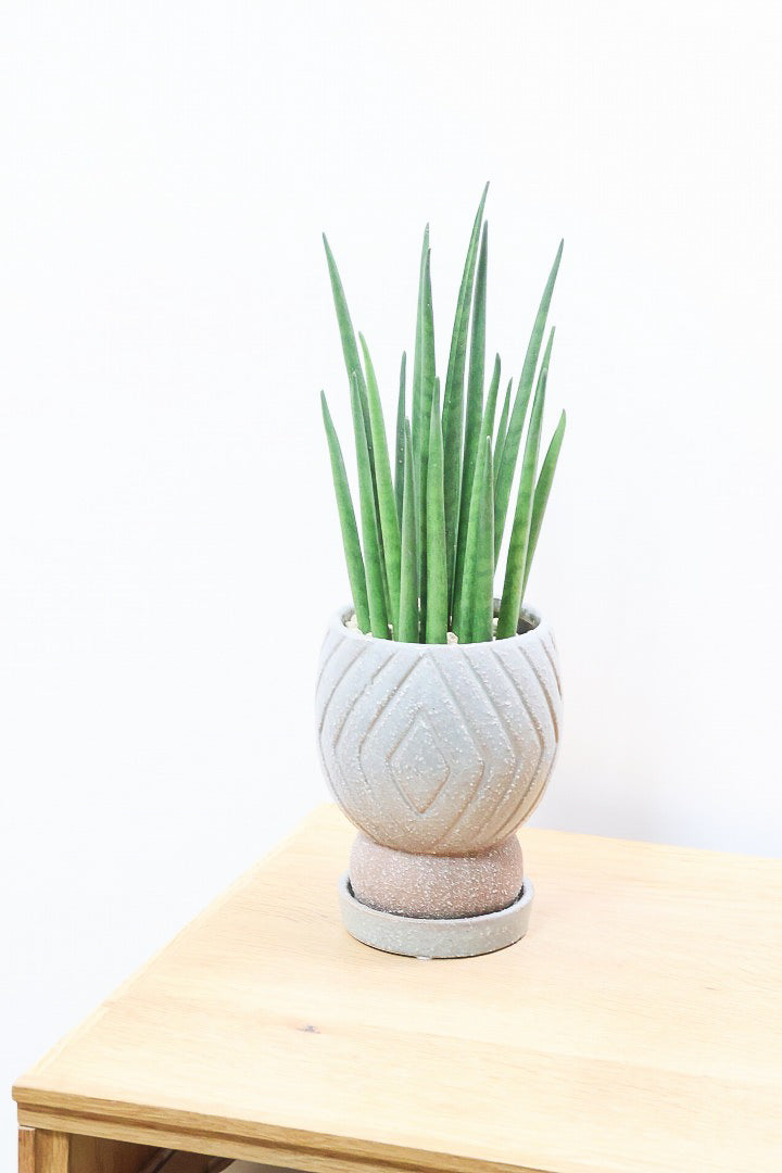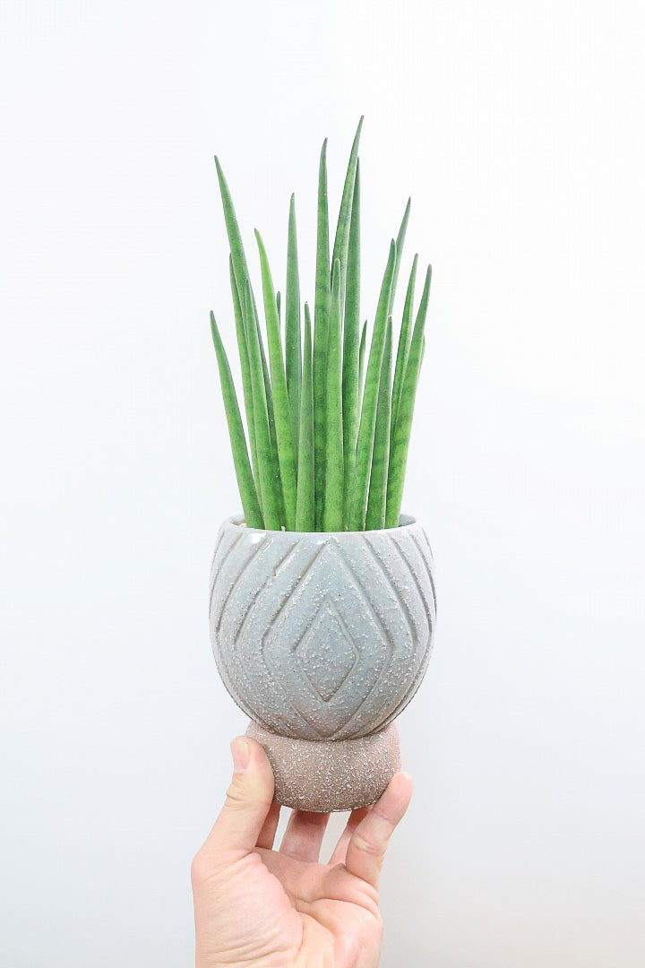 マイナスイオンを放出することで有名なサンスベリア♪葉の質感は多肉質でやや硬くとても丈夫です。新芽も出てくるので生長も楽しめます。生長すると小株がタケノコのようにニョキニョキ出てきて生長していきます。