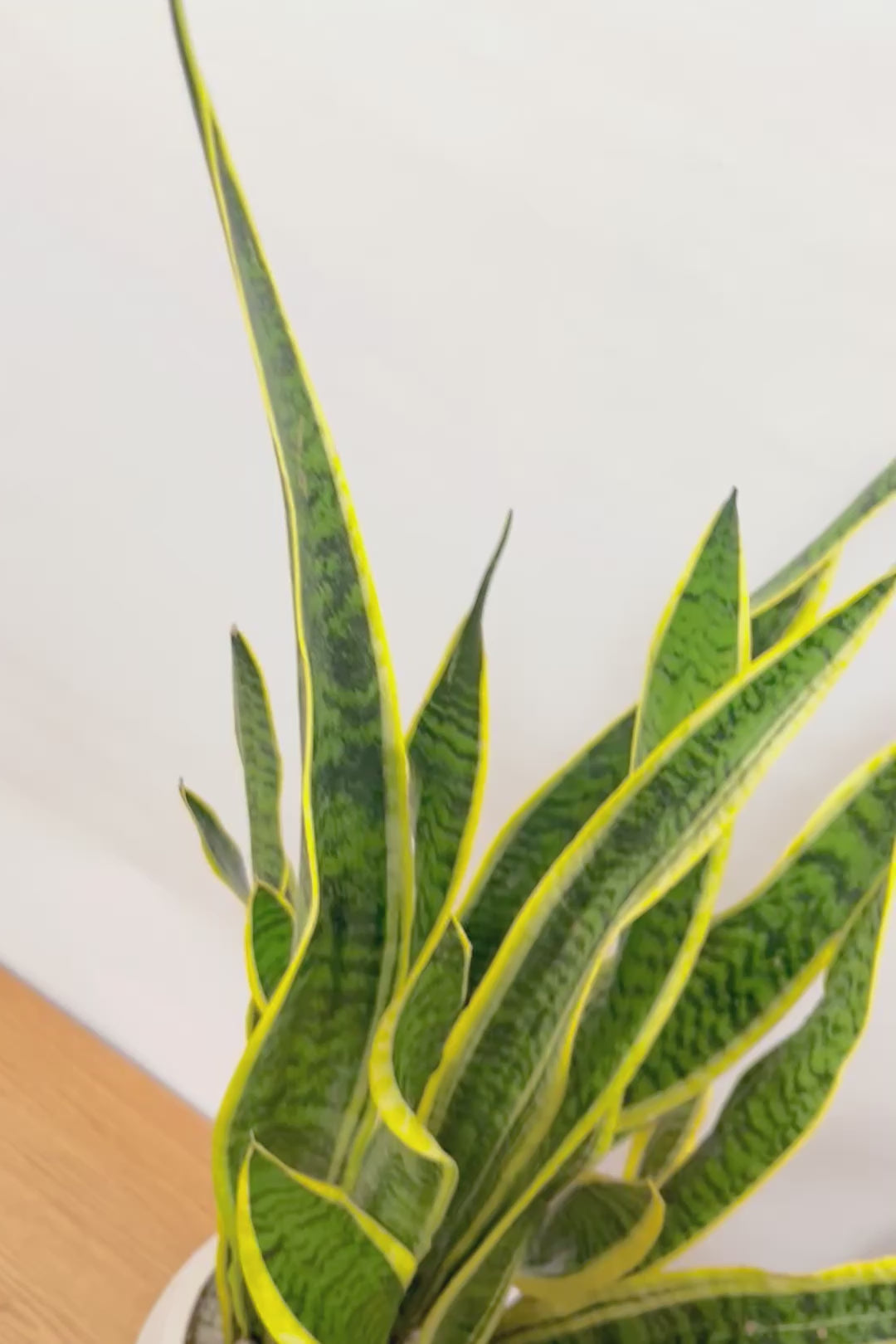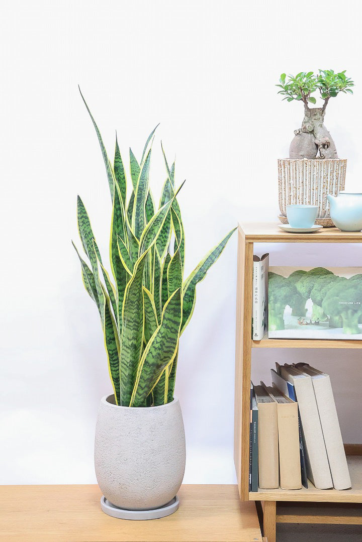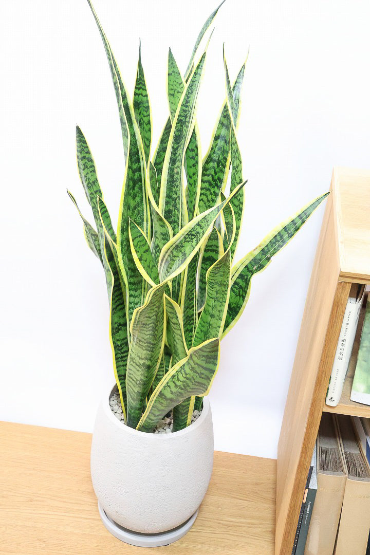【サンスベリア ローレンティ】丸みのあるかわいいポット!ボリューム満点で存在感がありますので、贈り物にも人気です!