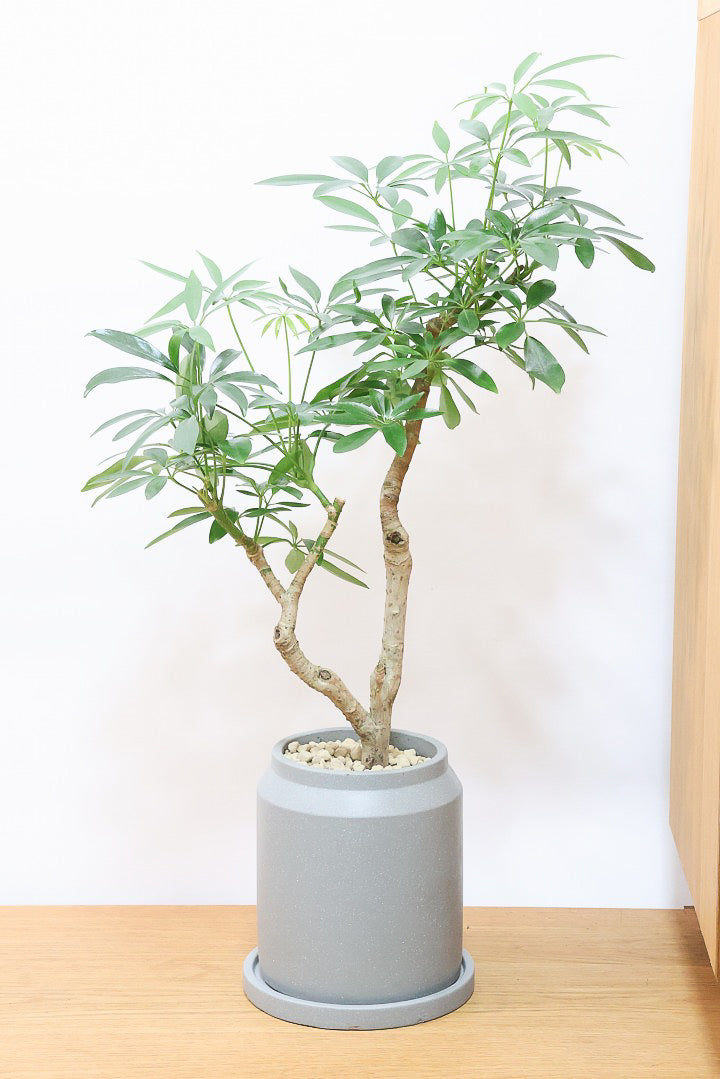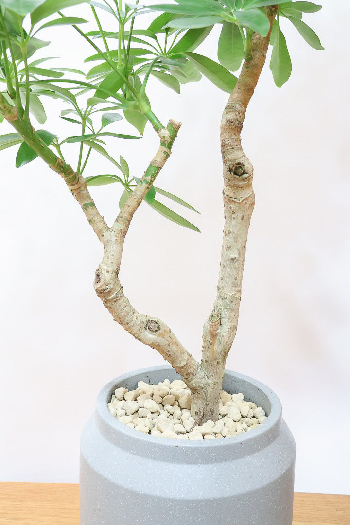 今回入荷のシェフレラはシェフレラの中でもとても育てやすいコンパクタという品種です!このサイズ感でこれほどしっかりとした幹はなかなか見かけることがありません!性質はとても健常で丈夫。個性的な樹形のものが多く、お部屋のメイングリーンになる観葉植物です。長い時間けて生長する楽しみな植物です。
