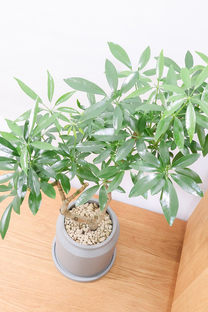 今回のシェフレラは当店でじっくりと育ててここまでの樹形にしました!何度も剪定をして理想的な樹形に仕立ててみました!手間暇かけて作り込んだ樹形を是非とものご堪能ください!