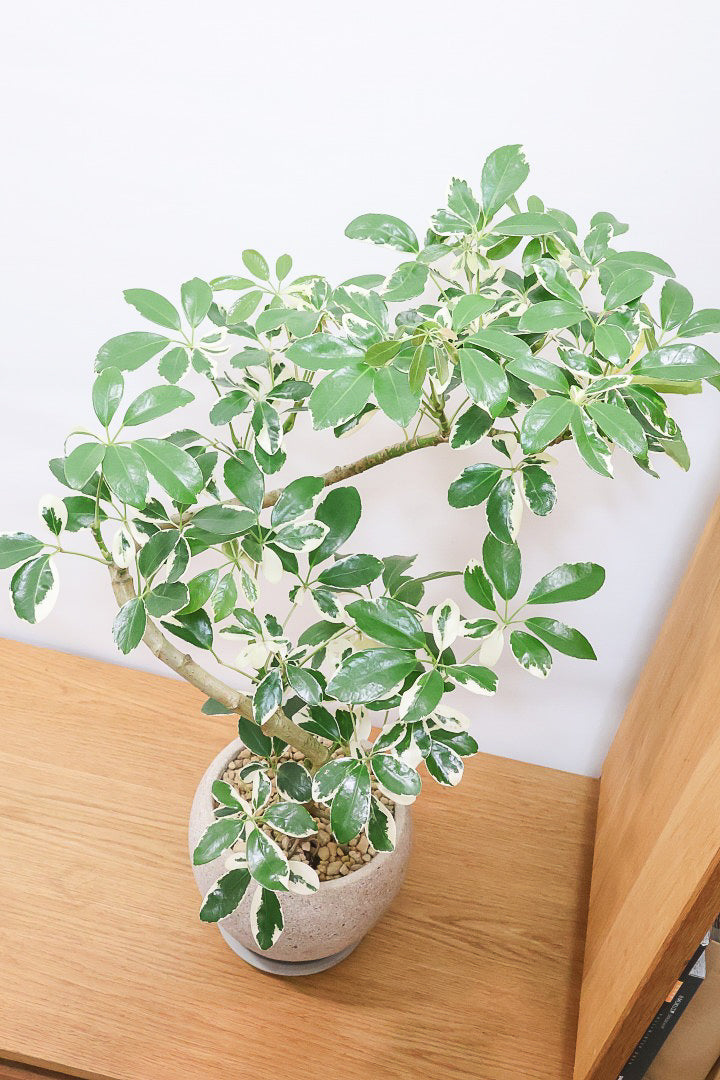※こちらのシェフレラは風通しがあまりよくなかったり日当たりが悪い場合に葉がパラパラと落ちることがありますが、その環境に慣れるとおさまります。