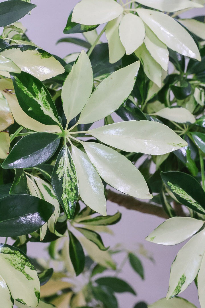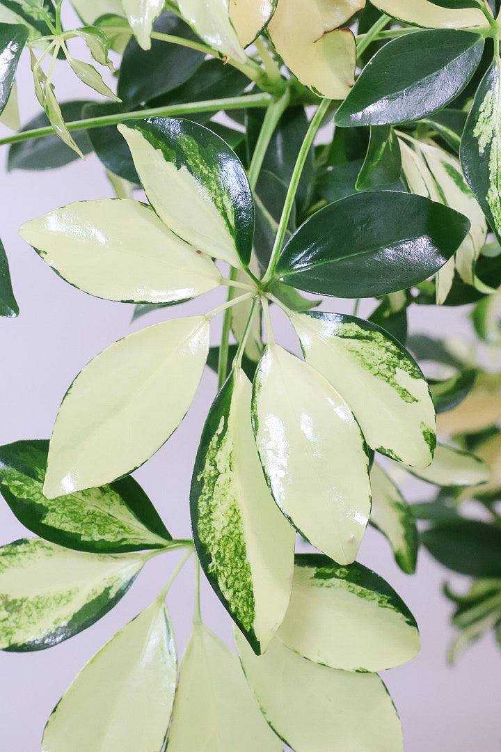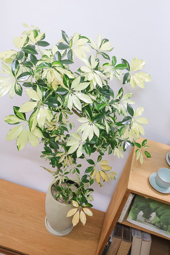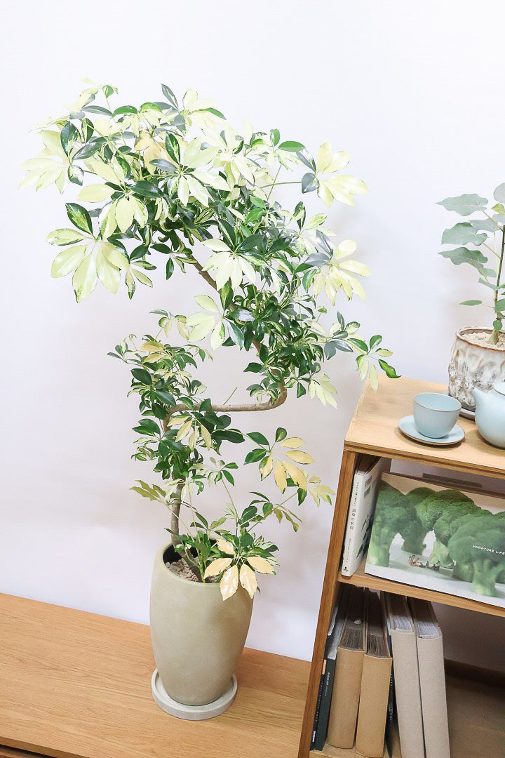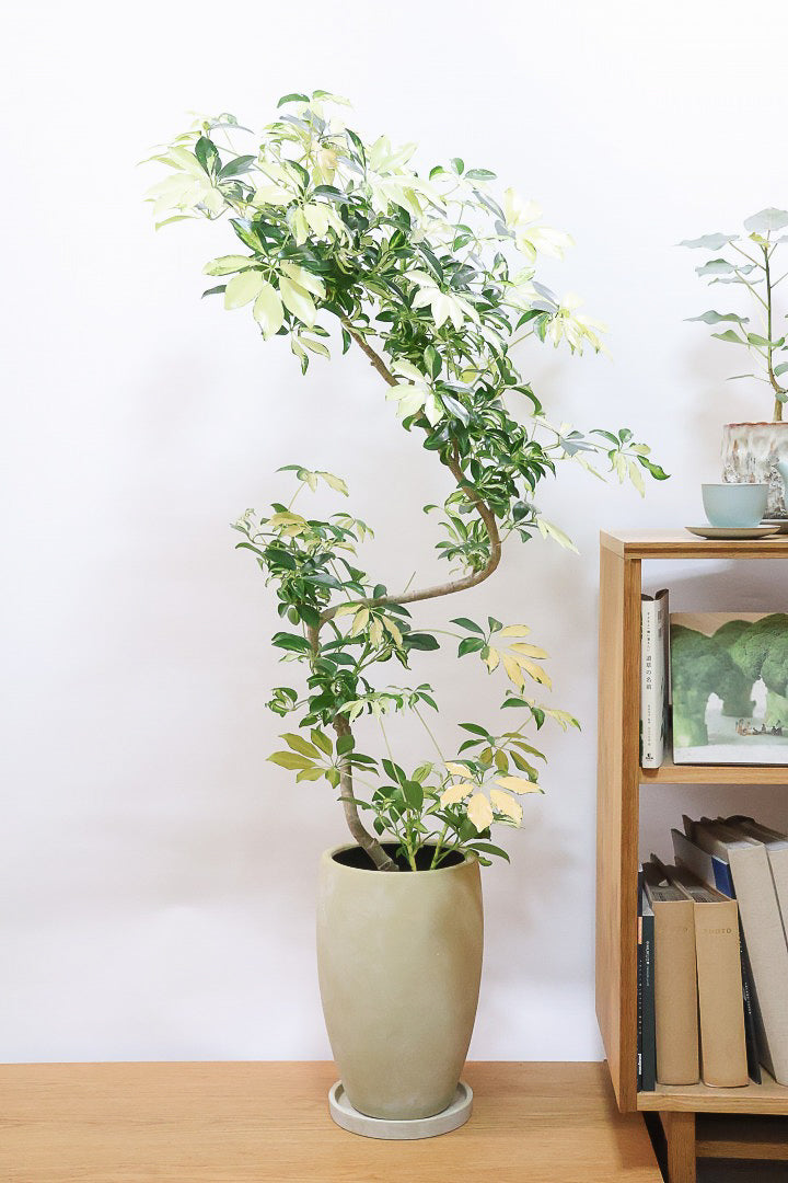 今回入荷のグランディはシェフレラの中でも葉の斑の入り方がとても素晴らしい品種となります!APEGOでは人気ダントツNO.1の品種です!シェフレラはその育てやすさから人気の品種です。性質はとても健常で丈夫。個性的な樹形のものが多く、お部屋のメイングリーンになる観葉植物です。長い時間けて生長する楽しみな植物です。