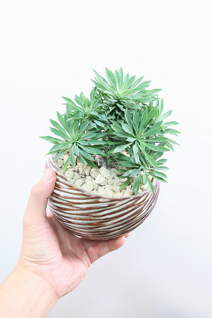 テーブルやデスクの上など、仕事中や家事中の癒しとして寄り添うミニサイズの観葉植物です。