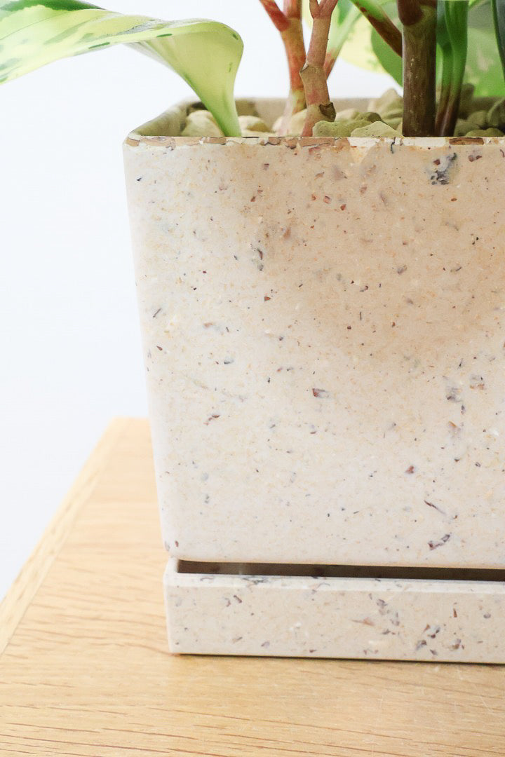 こちらのPOTは硬質プラスチック素材となります。軽量でとても扱いやすいのですが、普通のプラスチックPOTよりも趣があります。