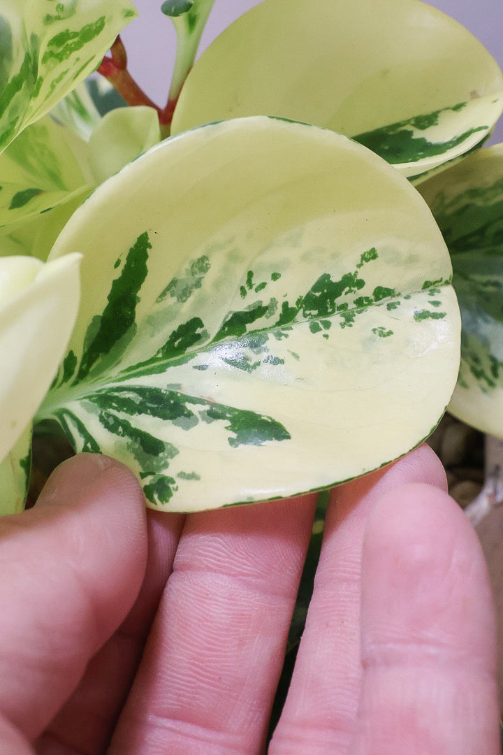 今回入荷の黄斑ペペロミアは数あるペペロミアの中でも大き目の葉が特徴。しかも今回は仕入れの際に特別に発色の良い個体を選りすぐってきました!しかも素晴らしいボリュームの個体です!