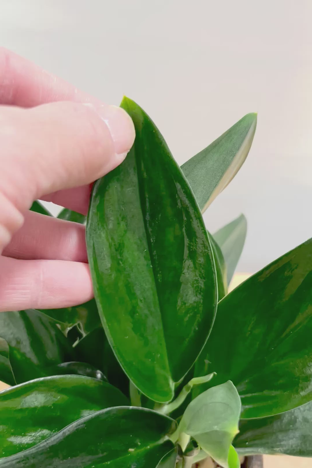今回入荷のスキンダプサスはほぼブラックと言ってもいいほどのダークグリーン。トレビーブラックは生長がとてもゆっくりなので生産者さん泣かせの品種なんです!でもホント美しい葉っぱです!
