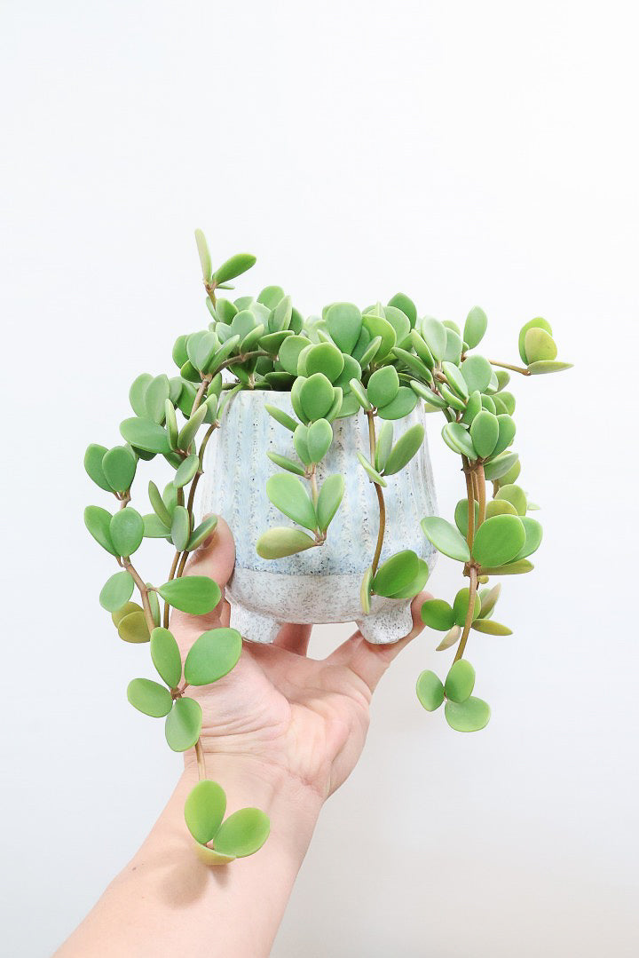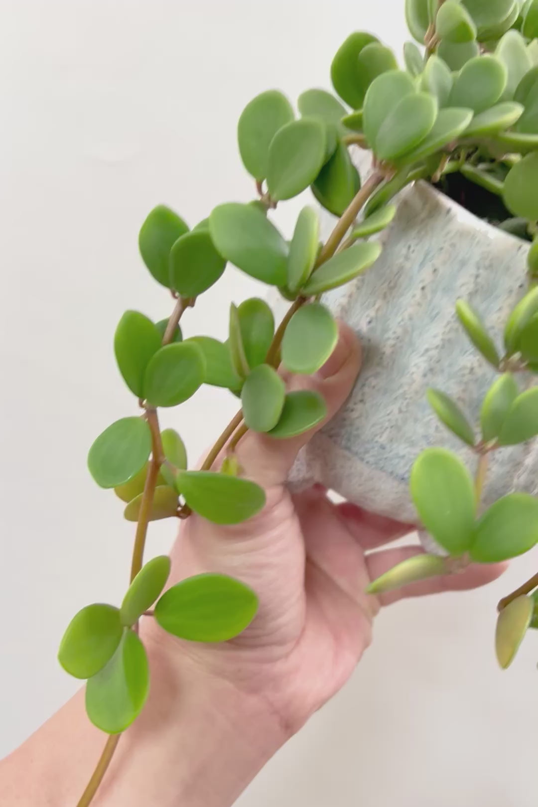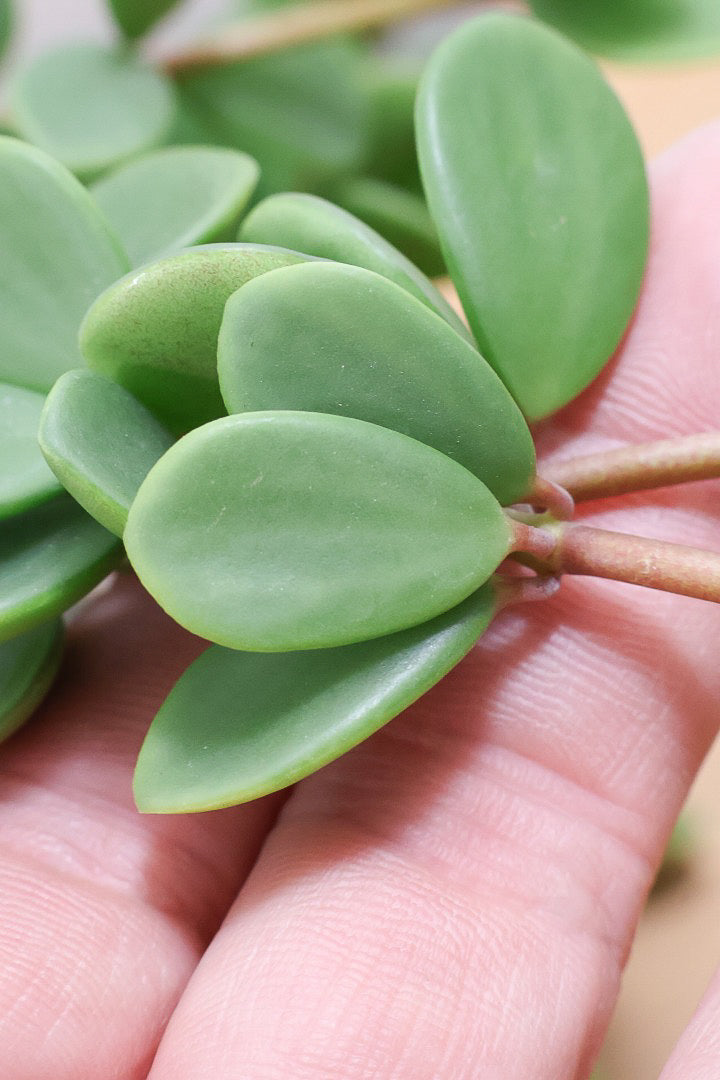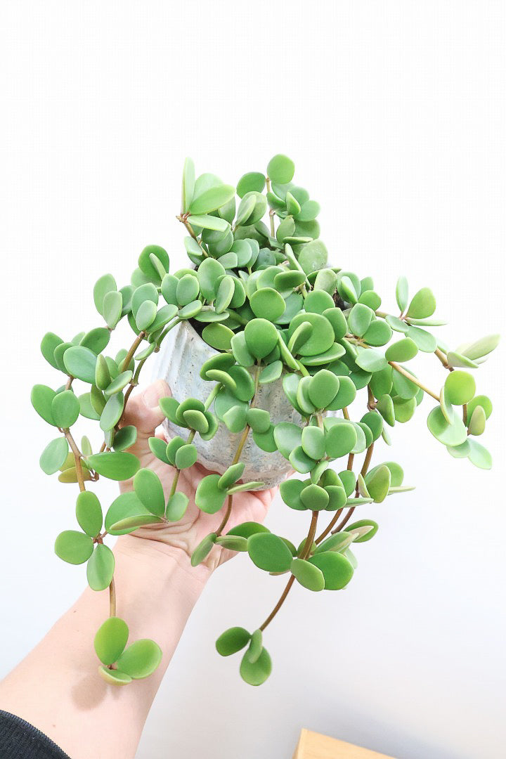 今回入荷のペペロミアは肉厚で丸い葉が特徴のホープという品種。ツル状にどんどんと生長していきますので、お部屋のインテリアとしてぴったりの植物です。