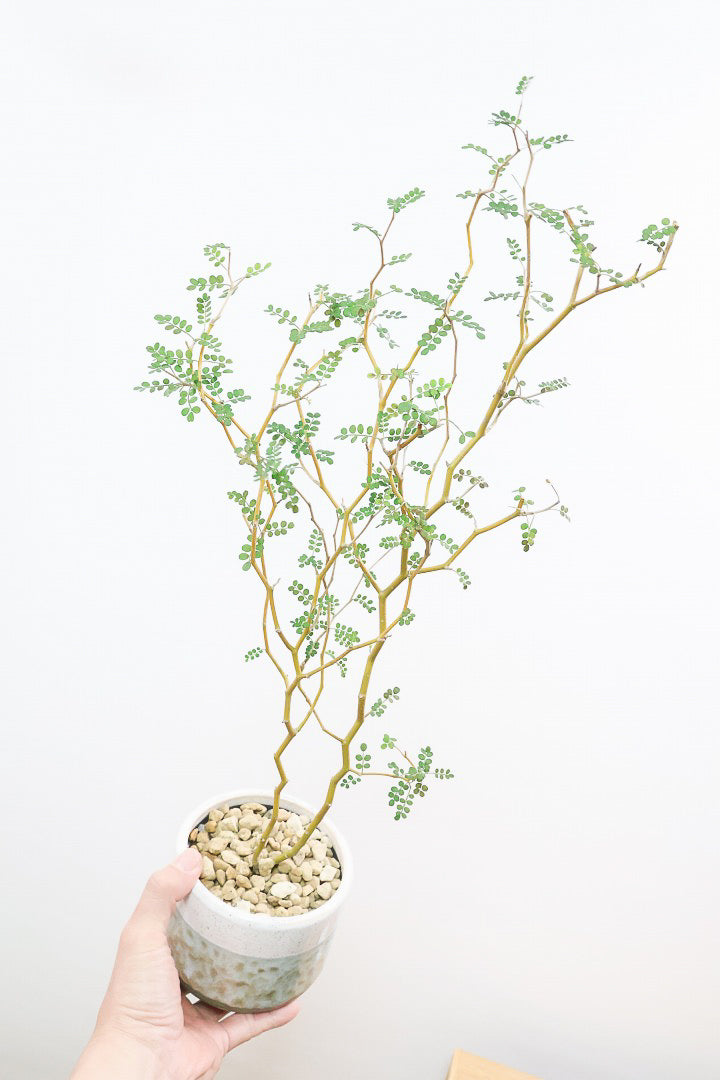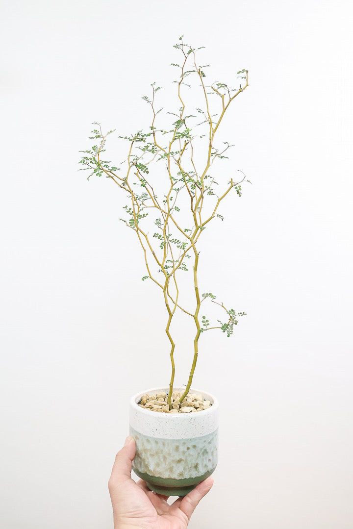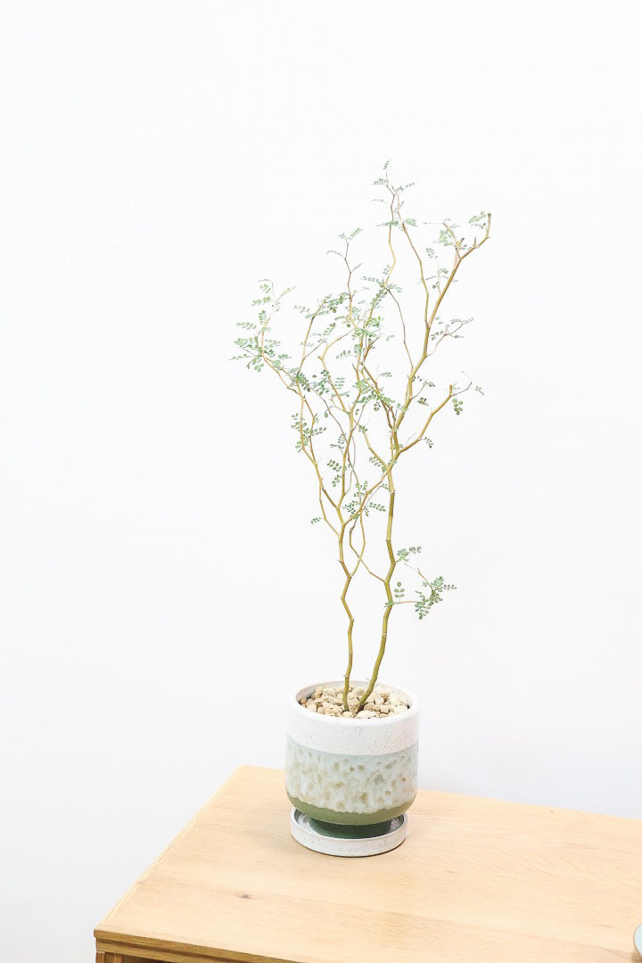 ジグザグとした針金の枝都かわいい葉っぱが特徴のソフォラ。寒さに強く、比較的育てやすい植物なので人気のある植物です。葉の質感はとても繊細で優しい質感です。長い時間をかけて生長する植物ですので、インテリアとしてぴったりの植物です。