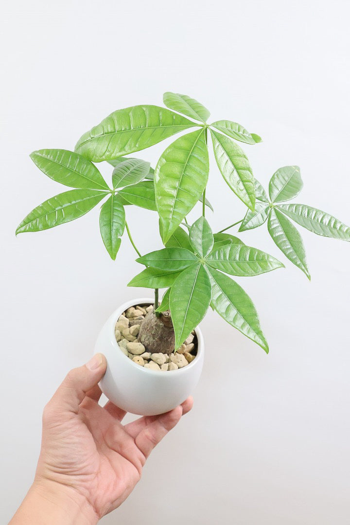 パキラは他の植物に比べ幹がとても個性的で独特な雰囲気を持っています。新芽はとても小さくてかわいいので成長が楽しめる観葉植物です。きれいな新芽を出すためには日がよく当たる場所に置き、肥料もしっかりあげること!!