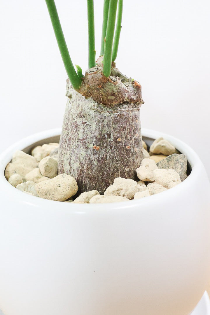化粧石を敷くと土の乾き具合がわかりにくく、水やりのタイミングが難しくなります。APEGOでは化粧石を小袋に入れてお届けしますので、水やりに慣れてから敷いてください。