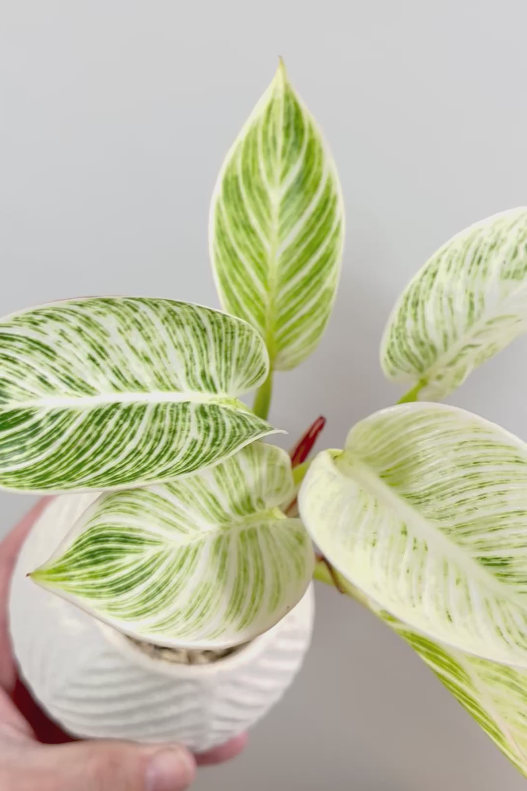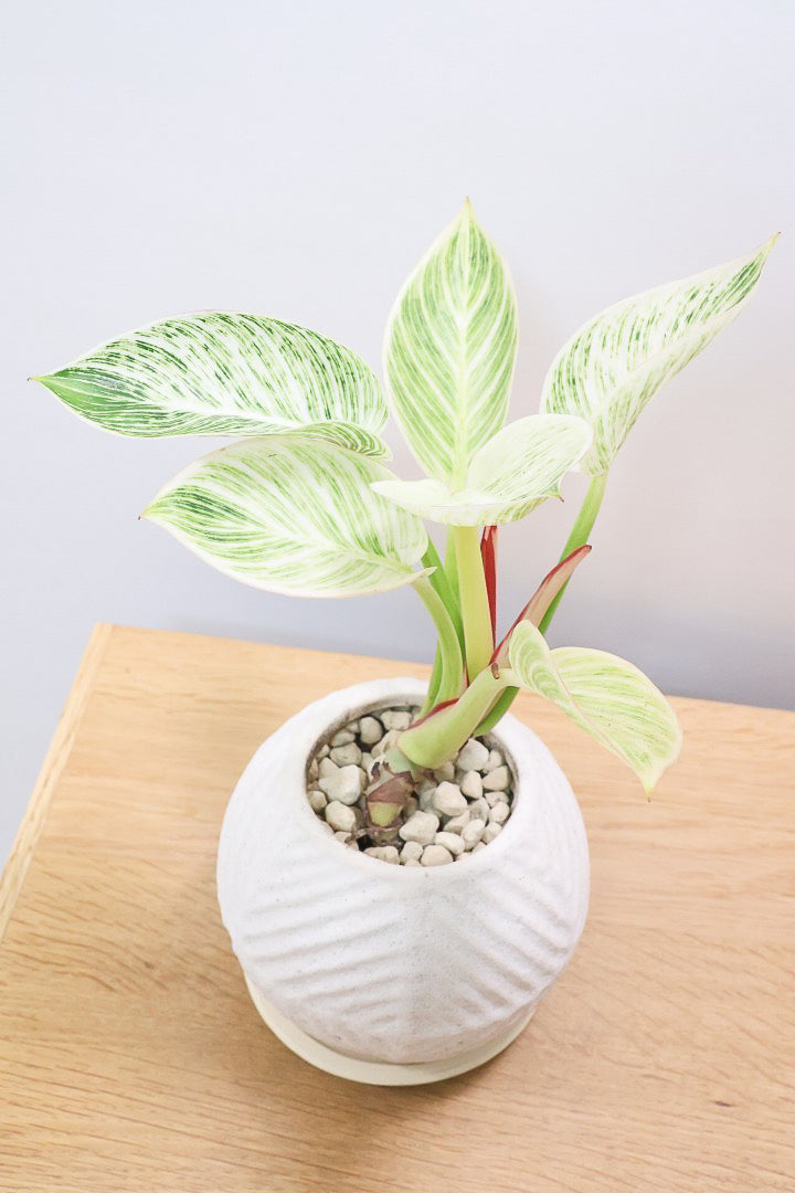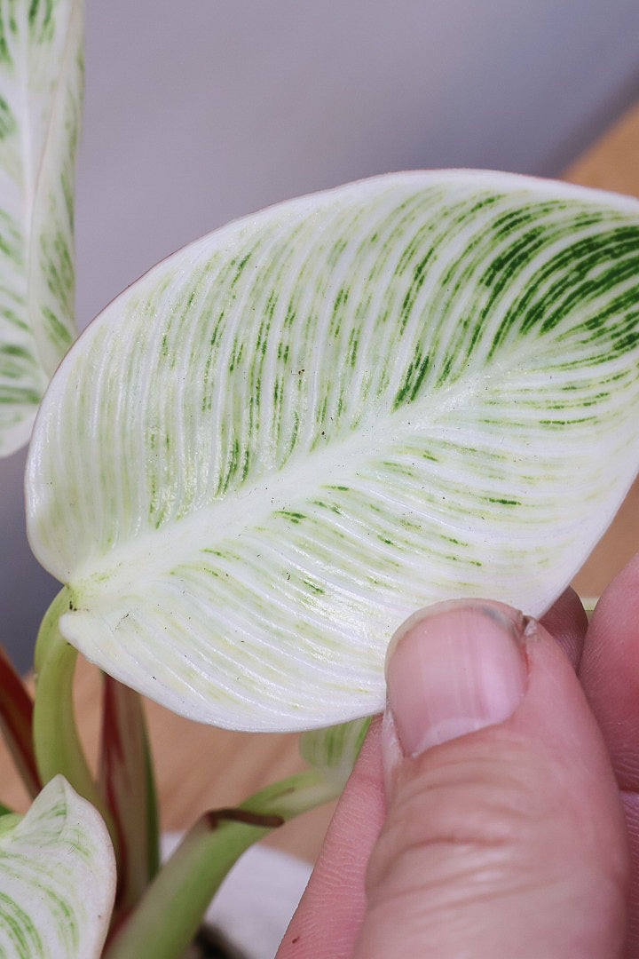 美しい葉が人気のフィロデンドロン。その中でもピンクバーキンはピンク&グリーンの葉で希少ななかなか出回らない品種です。長い時間けて生長し、葉を伸ばしていくので生長が楽しみな植物です。