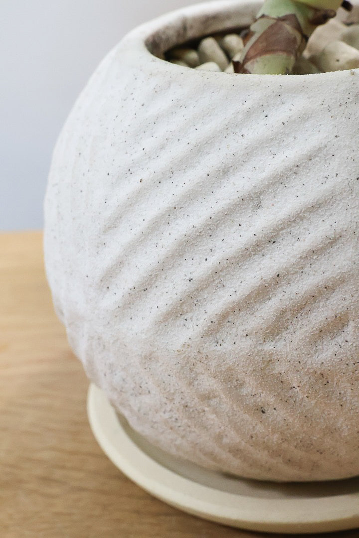 コンクリートの質感の陶器POTです※自然の風合いを大切にするため、色ムラや歪み、欠けなどが多少あります。ご了承ください。
