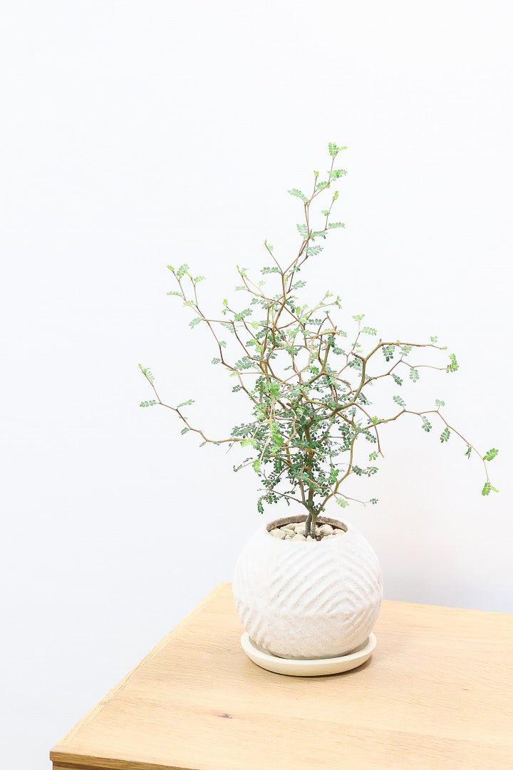 ジグザグとした針金の枝都かわいい葉っぱが特徴のソフォラ。寒さに強く、比較的育てやすい植物なので人気のある植物です。葉の質感はとても繊細で優しい質感です。長い時間をかけて生長する植物ですので、インテリアとしてぴったりの植物です。