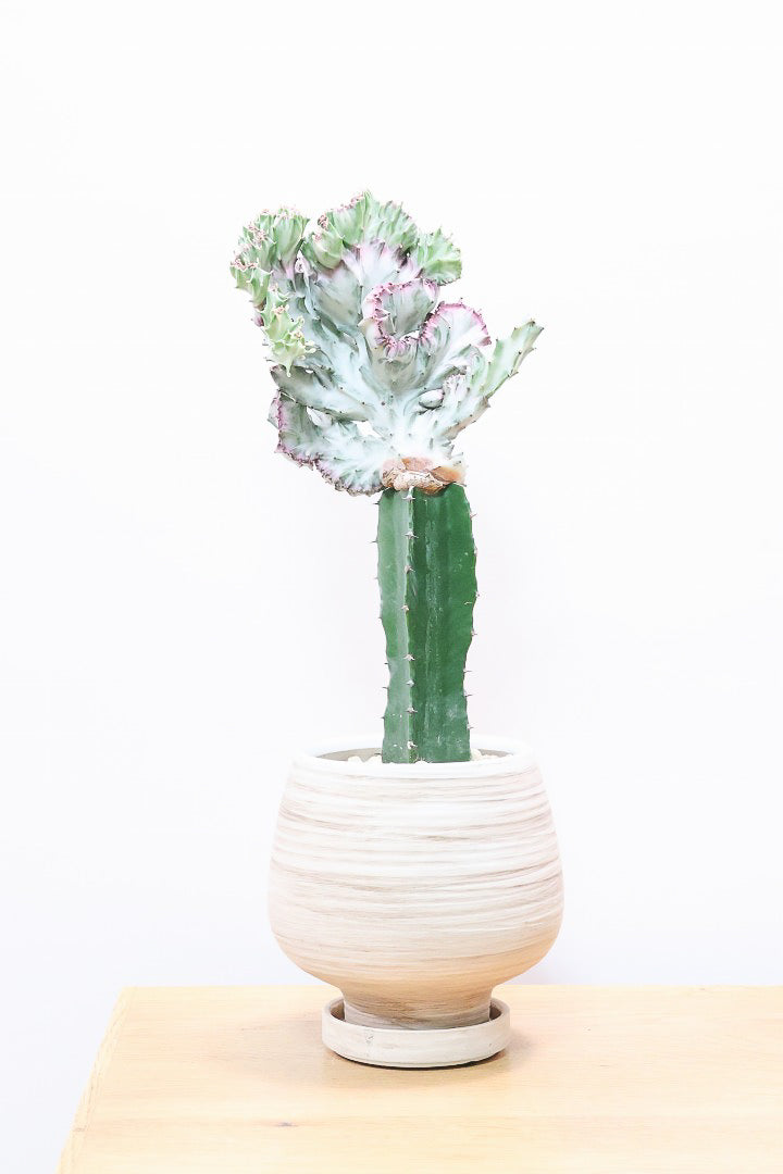 個性ある形状と豊富な種類で人気を集める多肉植物。南・中央アフリカや南米の乾燥地帯を原産地とし、ぷっくりとした肉厚の葉や茎には過酷な環境を生き抜くためにたっぷりと水分が蓄えられています。原種だけでも1万種以上あり、球状や鋭く尖ったもの、宝石のような形状をしたものまで独特のフォルムで見る人の目を楽しませてくれます。サイズ感も小ぶりなものが多く、植物の模様替えも手軽にできますし、複数種を育てることができるのも魅力です。