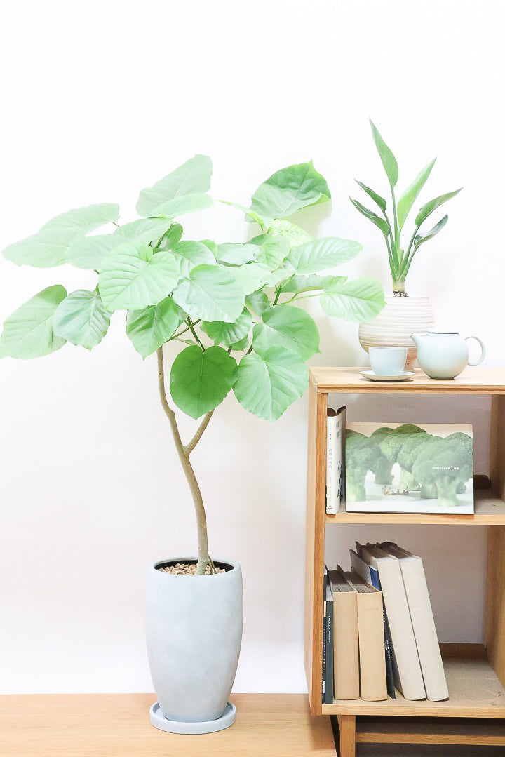 生長を見据えて選んだ陶器鉢は、3年程度植え替え不要。すぐに飾れる完成された姿でお届けします。