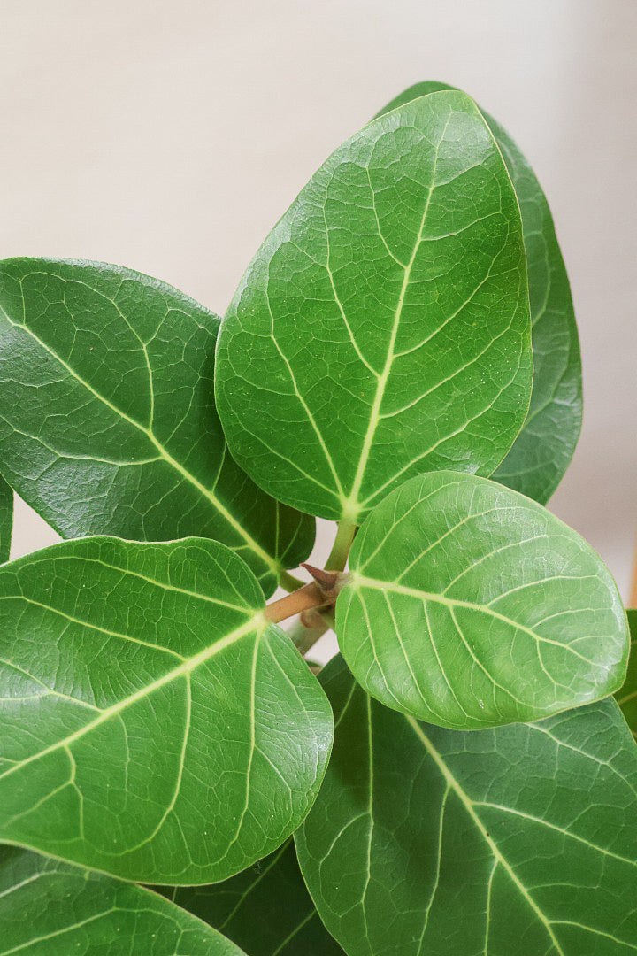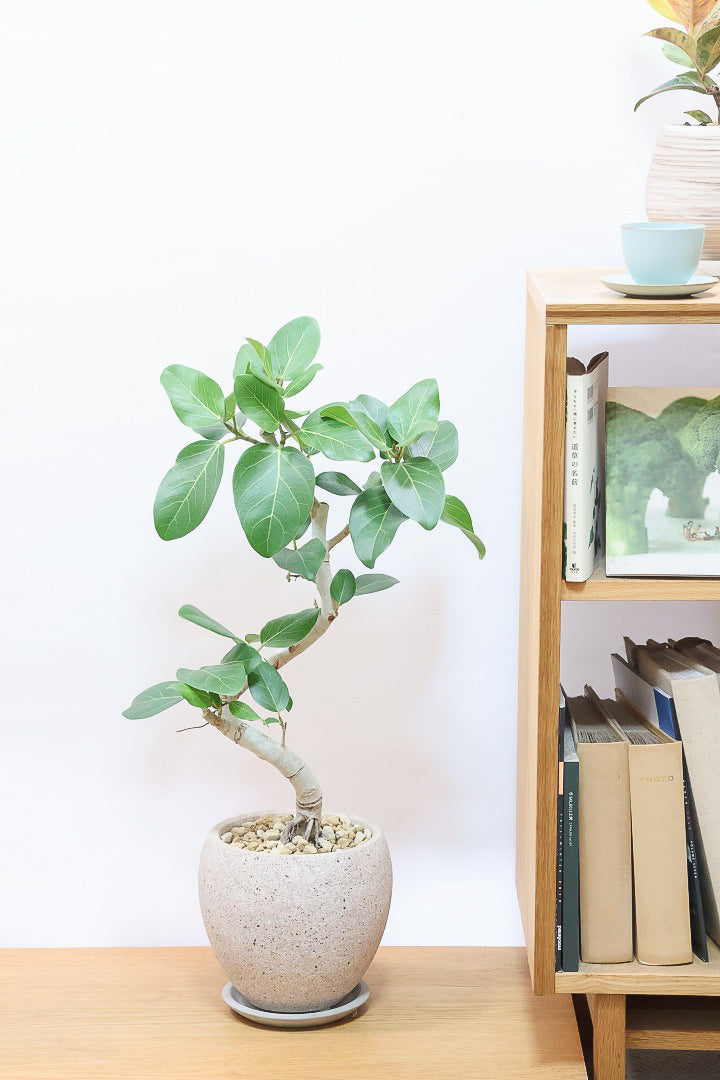 ゴムの木の仲間でとにかく丈夫で育てやすい!!葉っぱ一枚一枚がと大きいので存在感がとてもある植物です。葉の質感は肉厚でとてもしっかりとしています。長い時間をかけて成長する植物ですので、お部屋のインテリアとしてぴったりの植物です。