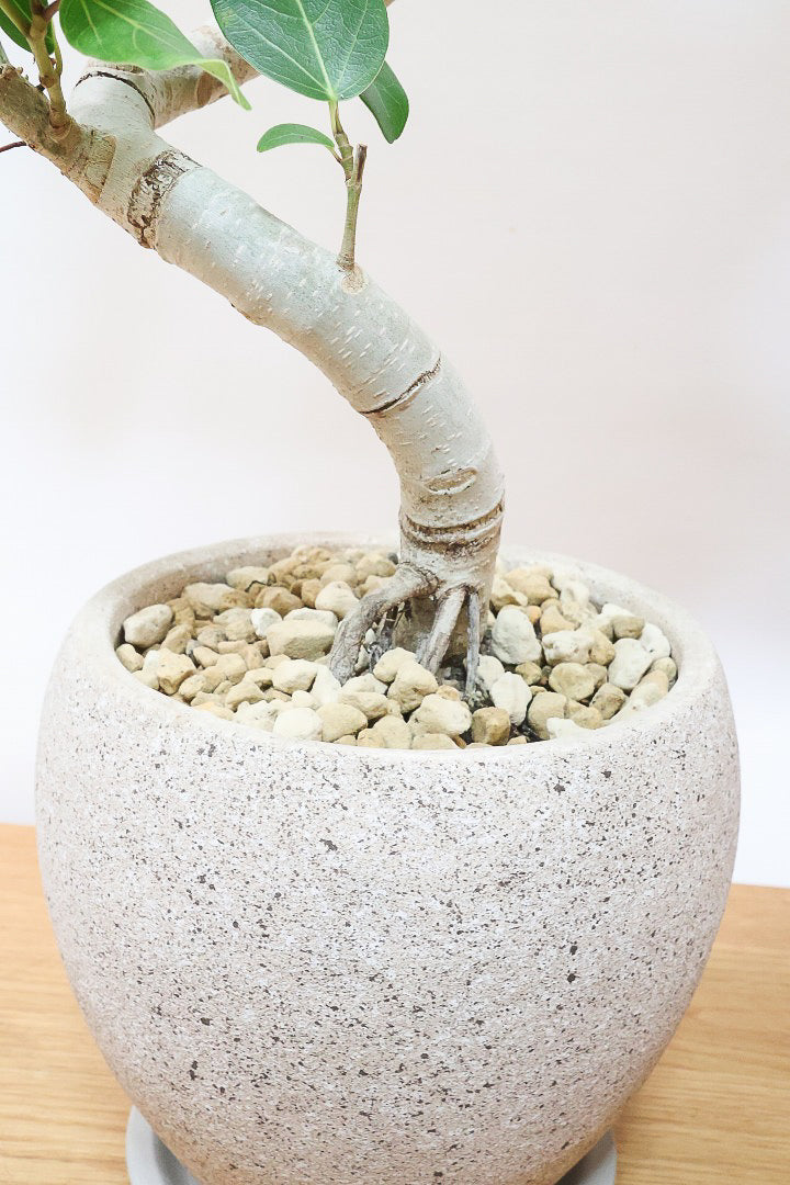 生長を見据えて選んだ陶器鉢は、3年程度植え替え不要。すぐに飾れる完成された姿でお届けします。