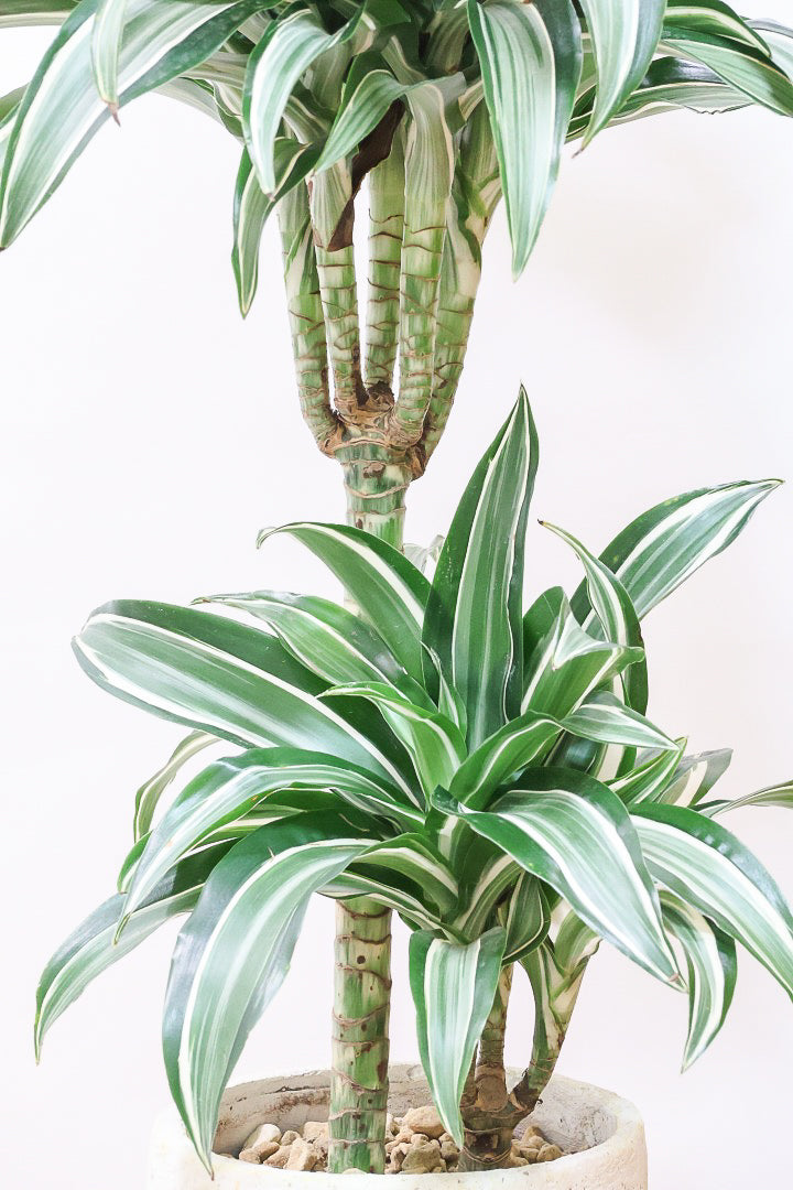 今回入荷のジェイドジュエルは爽やかなコントラストの葉が人気のドラセナ!じっくりと長い期間をかけて作り込まれました。2本植わっていますので、全体のバランスもとてもいい感じです!